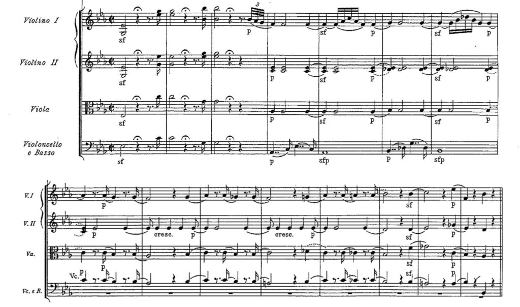 5と7のsfを含むフレーズが難しい。sfは他の楽器に任せるべき?動画を見ていたら、タイがかかっているsfでわざわざD線からG線へ取り直す人も。パート全員でやると違和感がありそうだけど、数人そういう人がいてもいいのかもしれない。8からの2ndバイオリンも拘り甲斐がありそう。